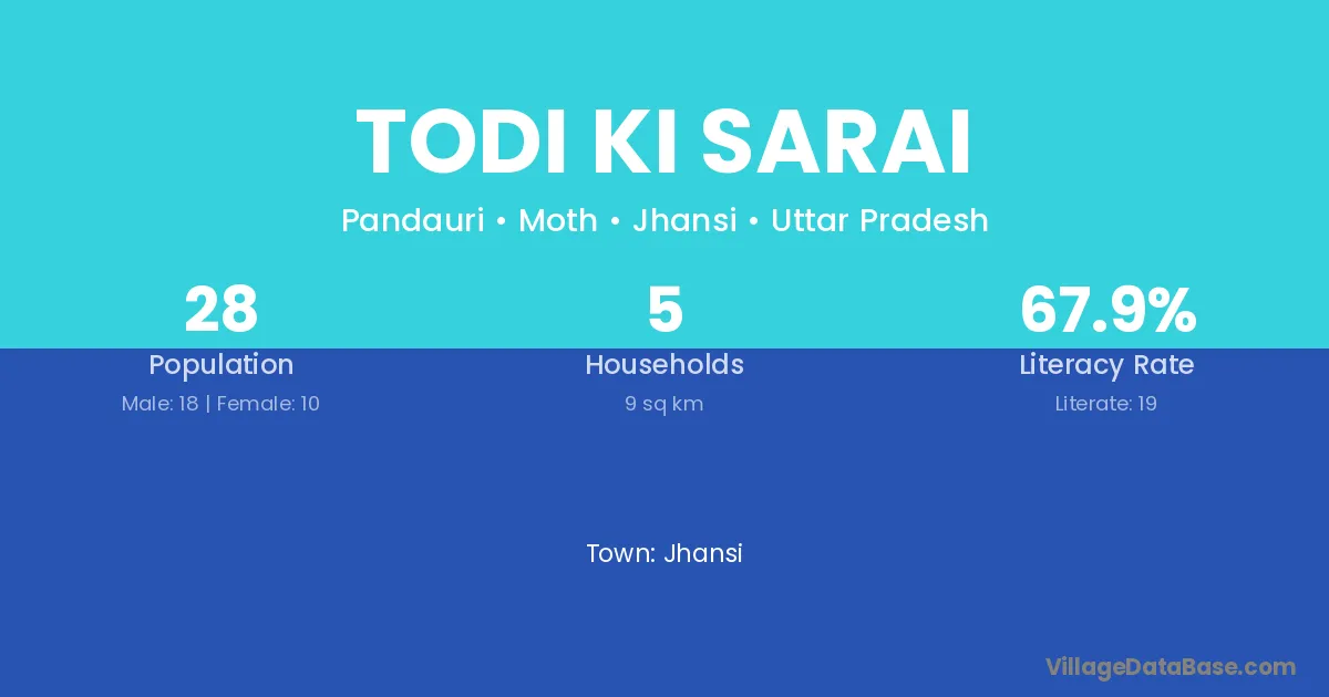 Todi Ki Sarai village has a total population of 28 people, of which 18 are males and 10 are females.