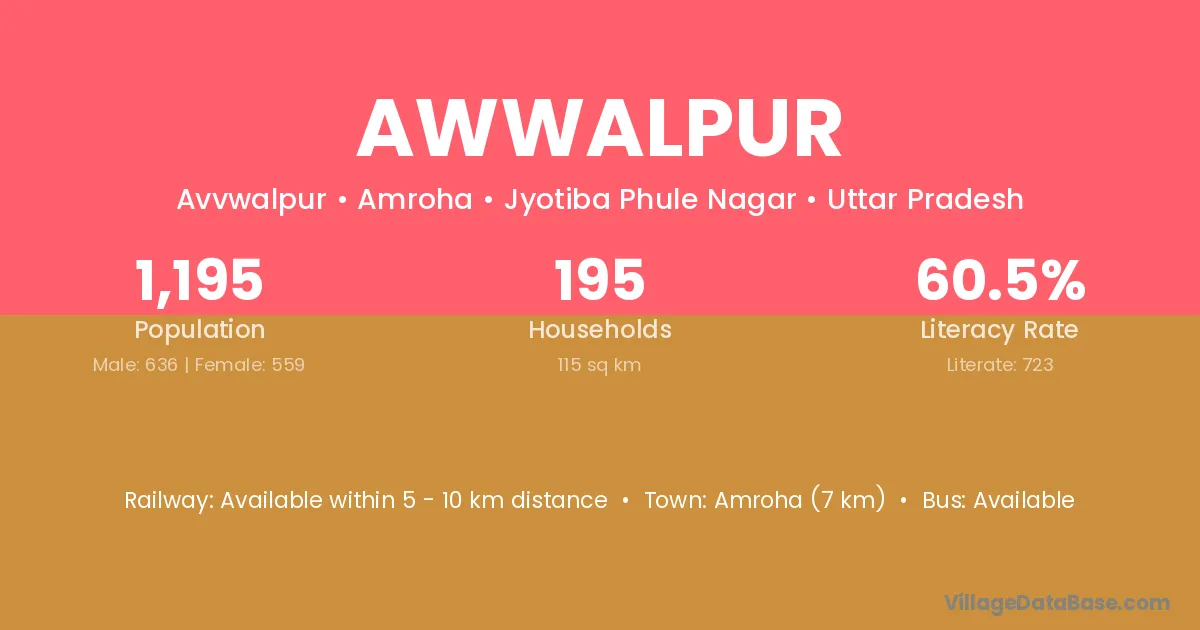 Amroha (7 km) is the nearest town to Awwalpur village for major economic activities and is located approximately 7 km away.