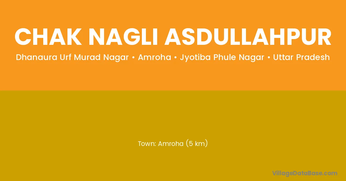 Amroha (5 km) is the nearest town to Chak Nagli Asdullahpur village for major economic activities and is located approximately 5 km away.