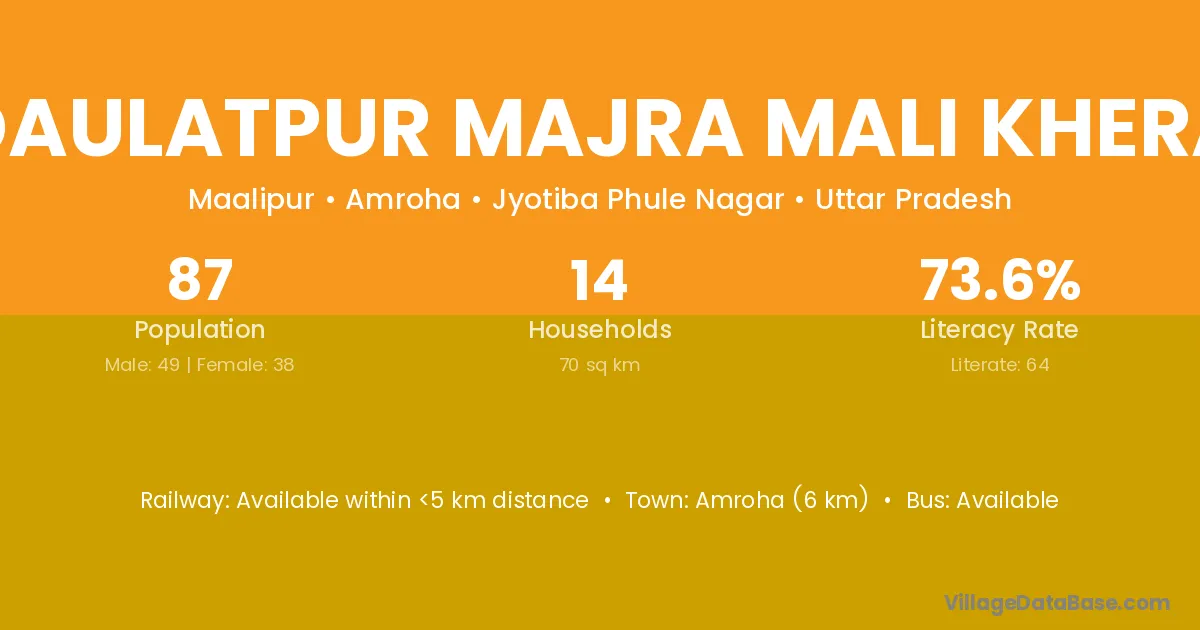 Amroha (6 km) is the nearest town to Daulatpur Majra Mali Khera village for major economic activities and is located approximately 6 km away.