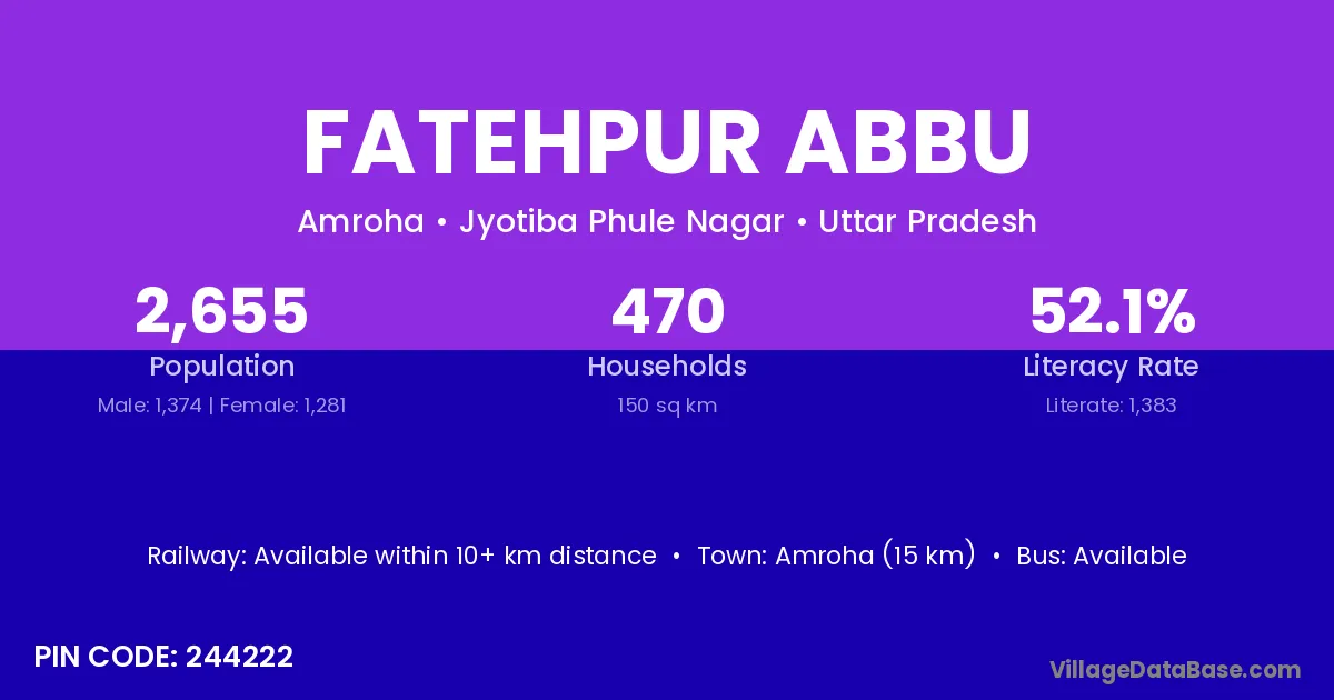 Amroha (15 km) is the nearest town to Fatehpur Abbu village for major economic activities and is located approximately 15 km away.