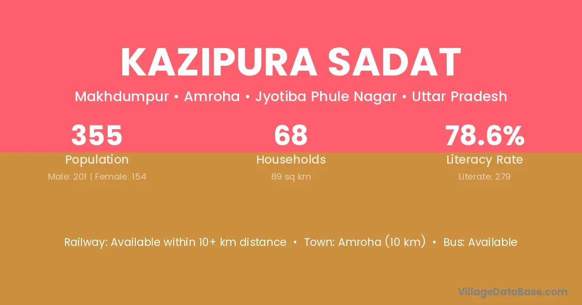 Kazipura Sadat village has a total population of 355 people, of which 201 are males and 154 are females.