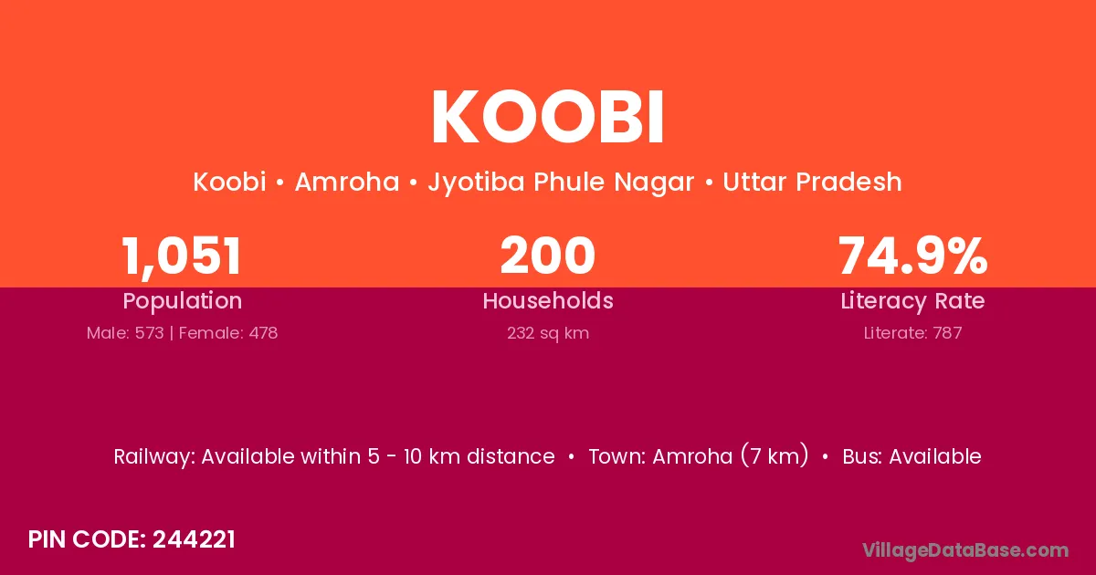 Koobi village is located in the Amroha Tehsil of the Jyotiba Phule Nagar district in Uttar Pradesh .