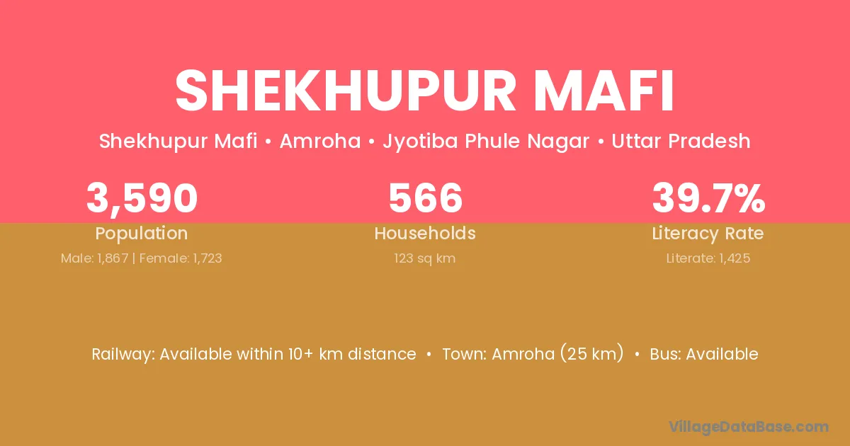 Amroha (25 km) is the nearest town to Shekhupur Mafi village for major economic activities and is located approximately 25 km away.