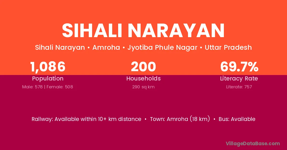 Amroha (18 km) is the nearest town to Sihali Narayan village for major economic activities and is located approximately 18 km away.