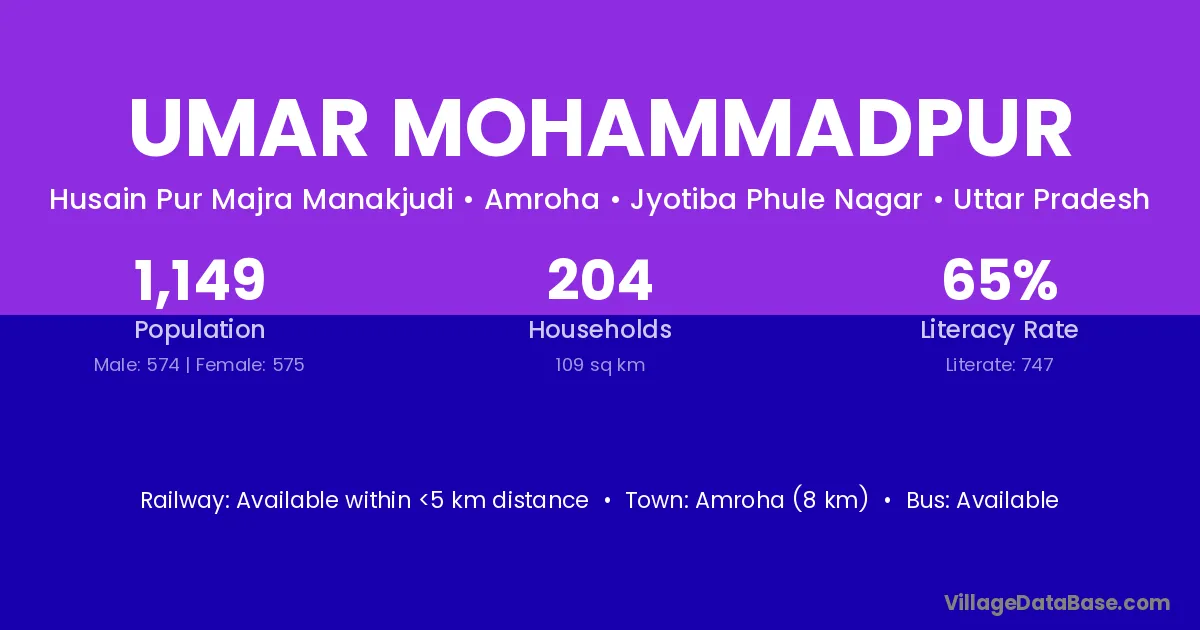 Amroha (8 km) is the nearest town to Umar Mohammadpur village for major economic activities and is located approximately 8 km away.