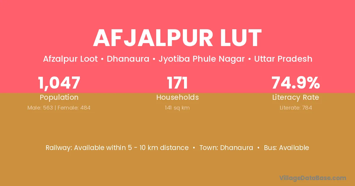 Afjalpur Lut village has a total population of 1,047 people, of which 563 are males and 484 are females.