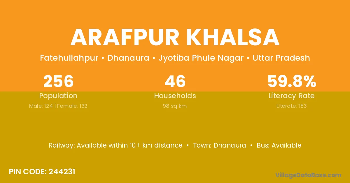 Arafpur Khalsa village has a total population of 256 people, of which 124 are males and 132 are females.