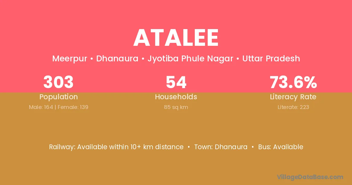 Atalee village has a total population of 303 people, of which 164 are males and 139 are females.