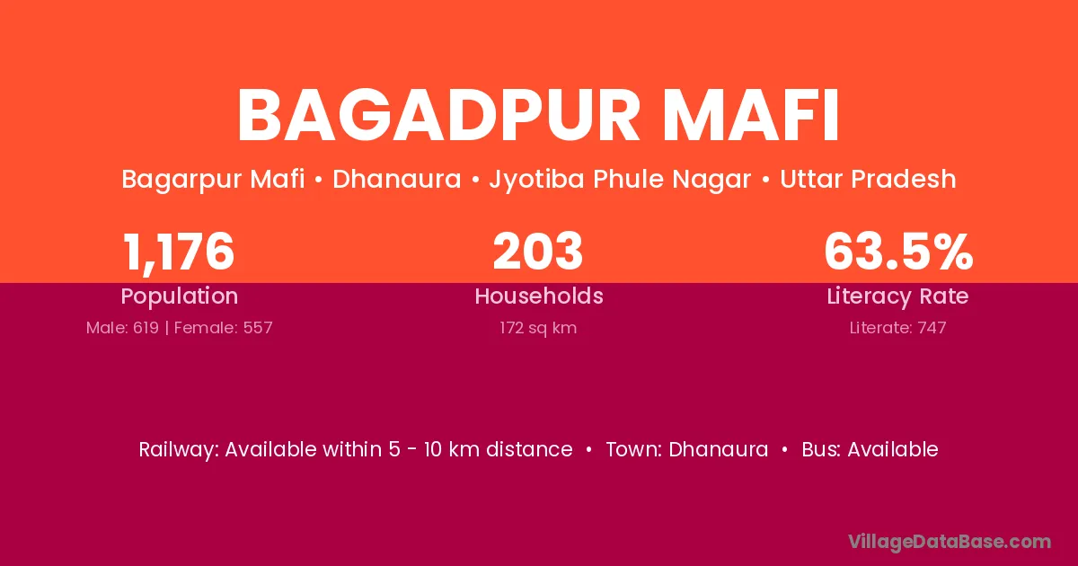 Bagadpur Mafi village has a total population of 1,176 people, of which 619 are males and 557 are females.