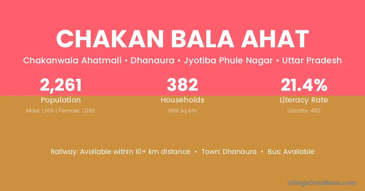 Chakan Bala Ahat village has a total population of 2,261 people, of which 1,169 are males and 1,092 are females.