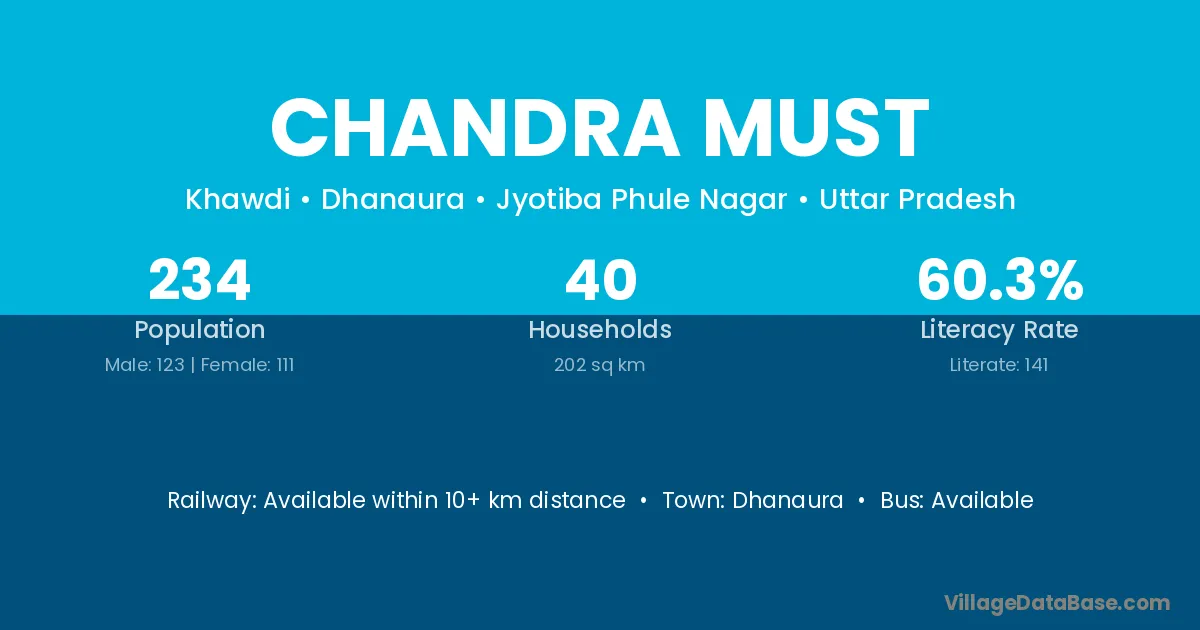 Chandra Must village is located in the Dhanaura Tehsil of the Jyotiba Phule Nagar district in Uttar Pradesh .
