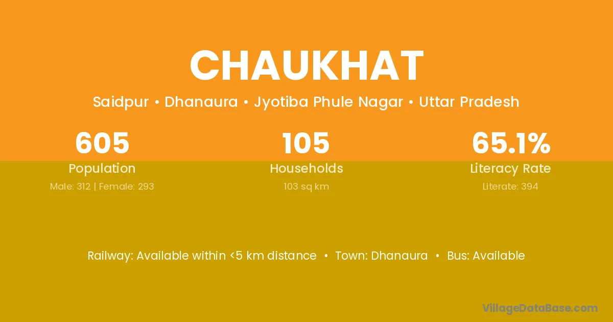 Chaukhat village has a total population of 605 people, of which 312 are males and 293 are females.