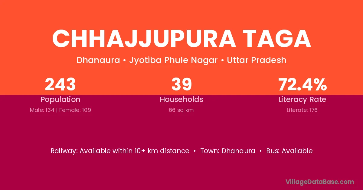 Chhajjupura Taga village has a total population of 243 people, of which 134 are males and 109 are females.