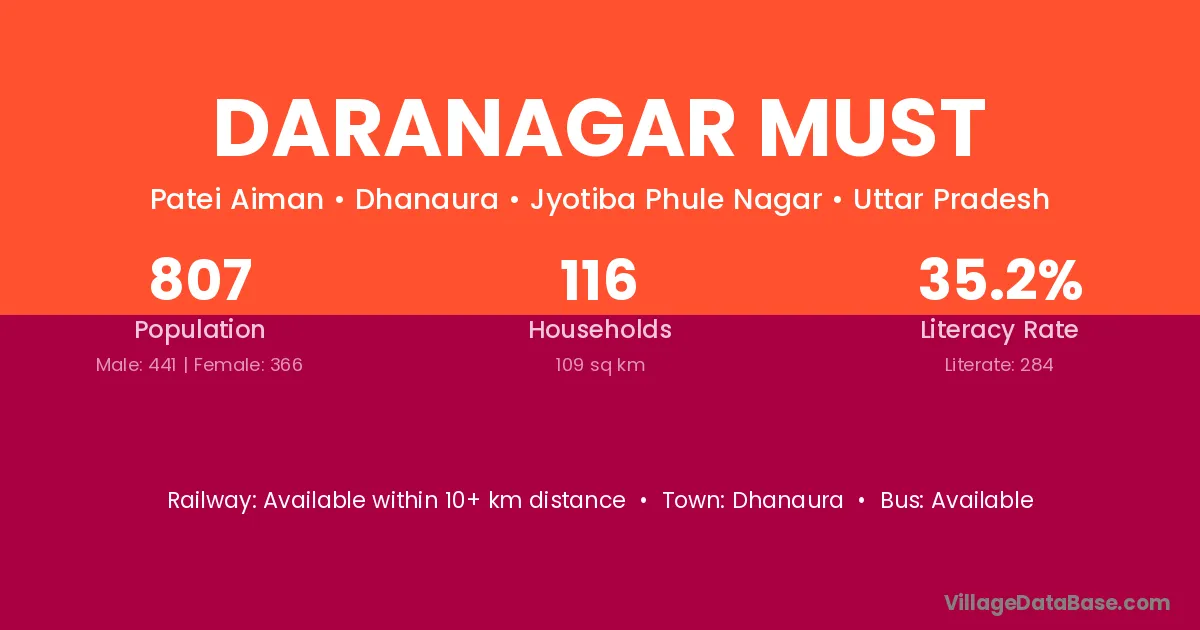 Dhanaura is the nearest town to Daranagar Must village for major economic activities
