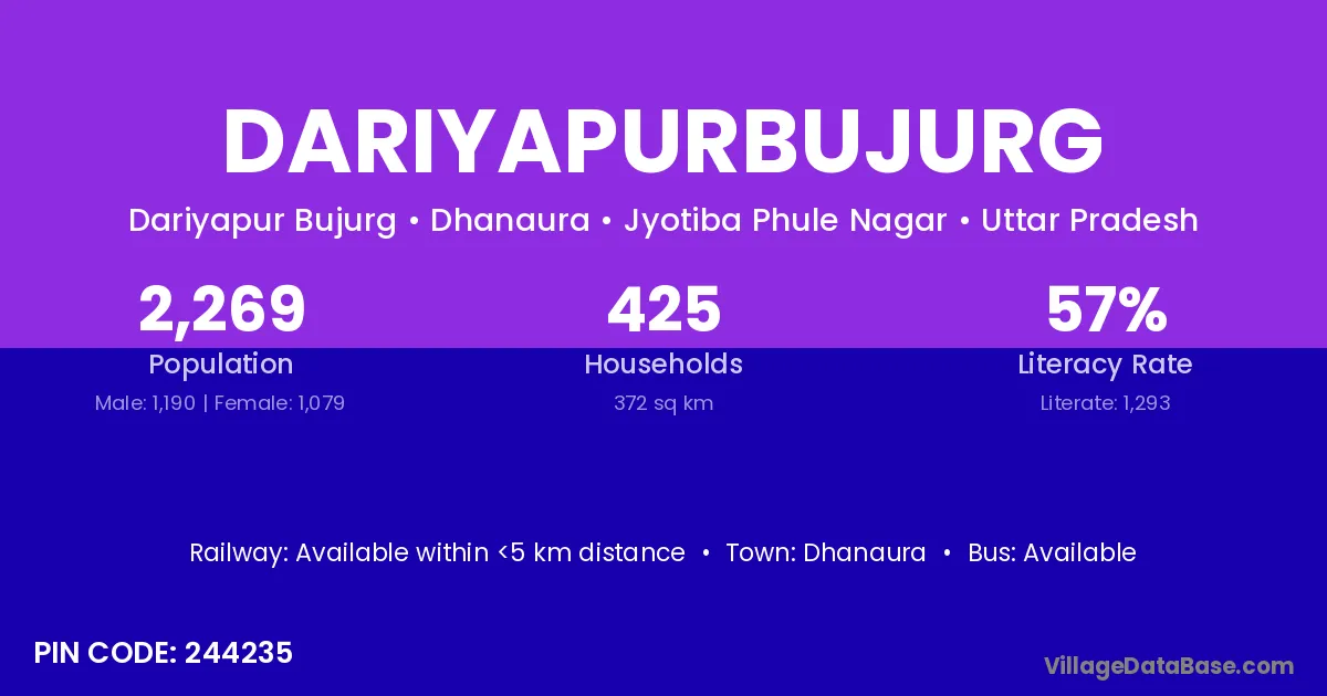 Dhanaura is the nearest town to Dariyapurbujurg village for major economic activities