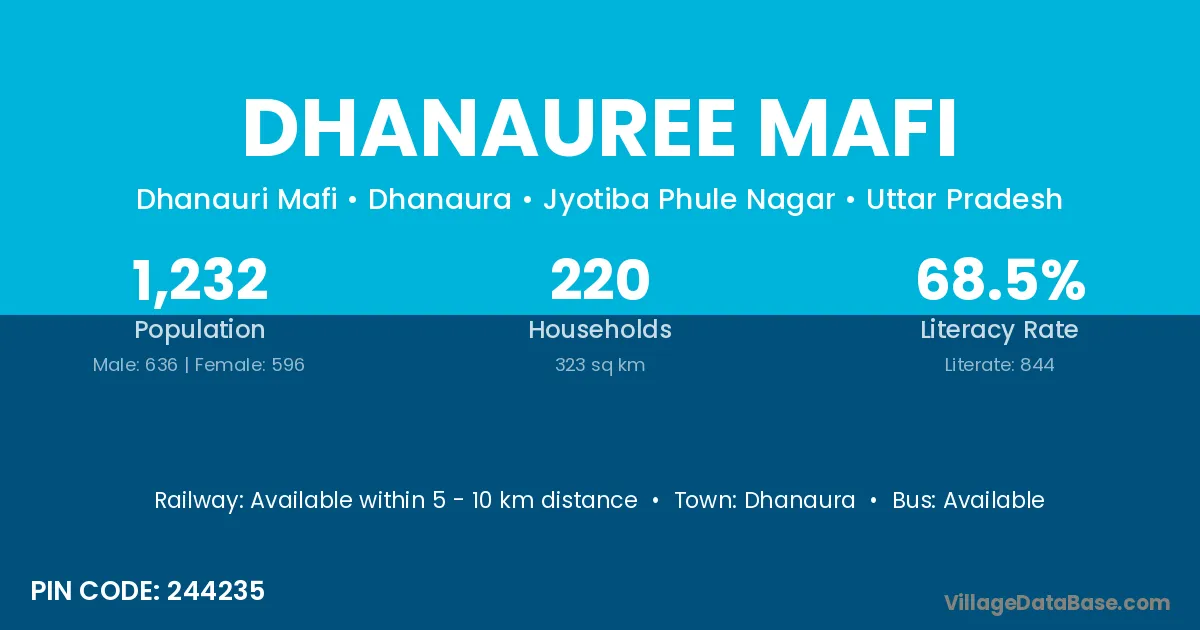 Dhanaura is the nearest town to Dhanauree Mafi village for major economic activities