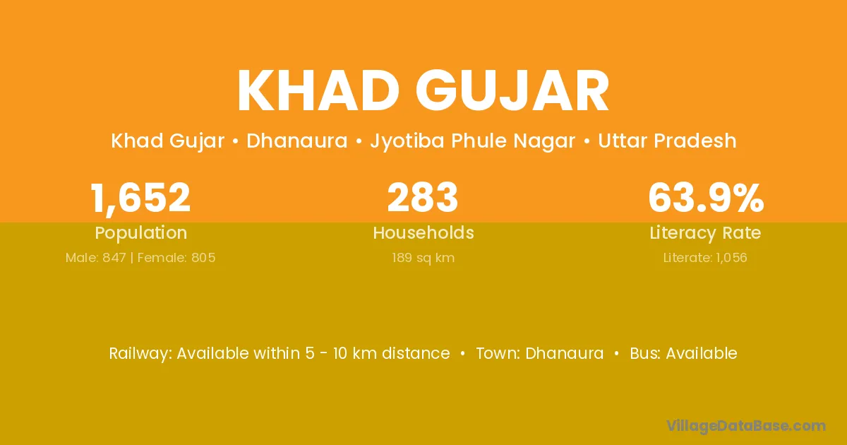 Dhanaura is the nearest town to Khad Gujar village for major economic activities