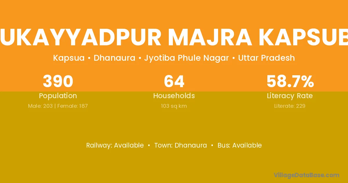 Mukayyadpur Majra Kapsuba village has a total population of 390 people, of which 203 are males and 187 are females.