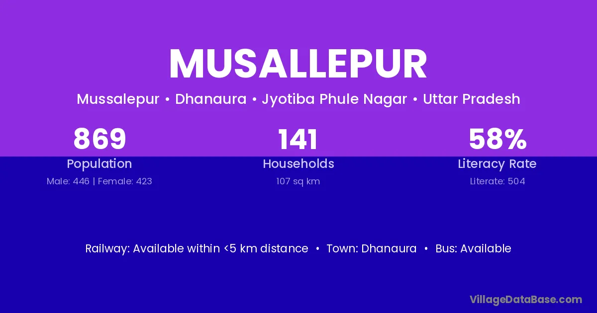 Musallepur village has a total population of 869 people, of which 446 are males and 423 are females.