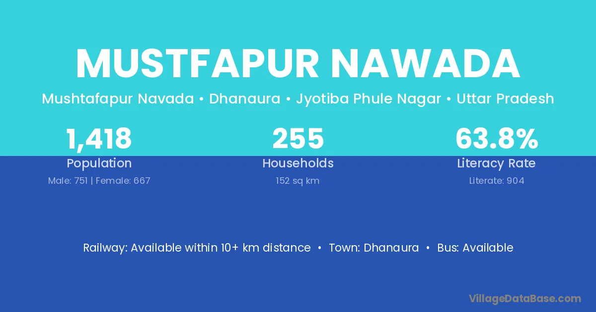 Mustfapur Nawada village has a total population of 1,418 people, of which 751 are males and 667 are females.