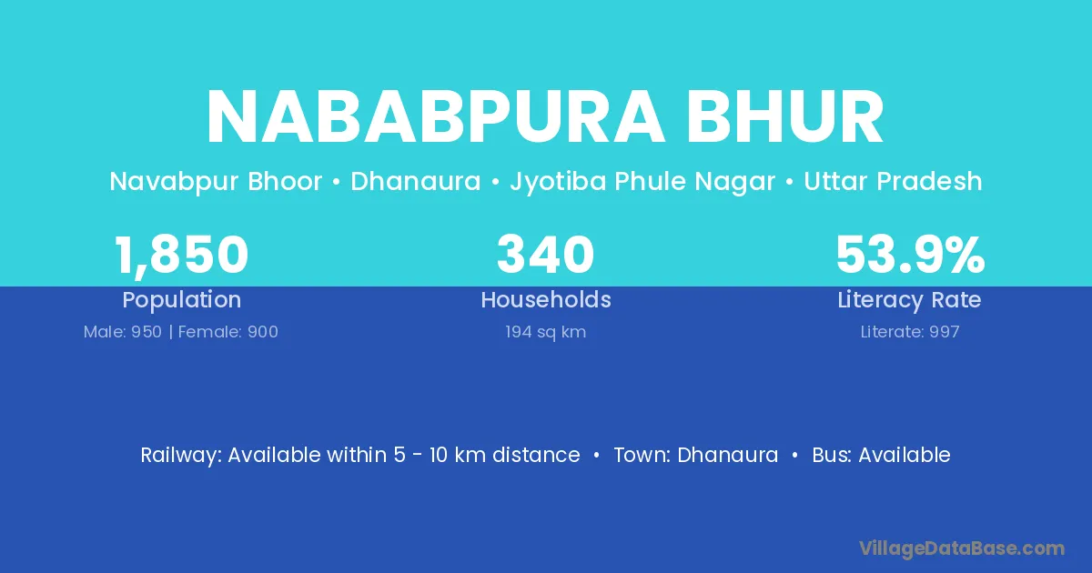 Dhanaura is the nearest town to Nababpura Bhur village for major economic activities