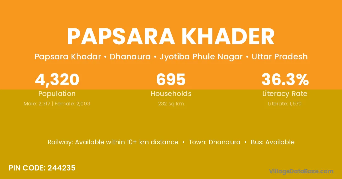 According to Census 2011 information, the village code of Papsara Khader village is 244235.