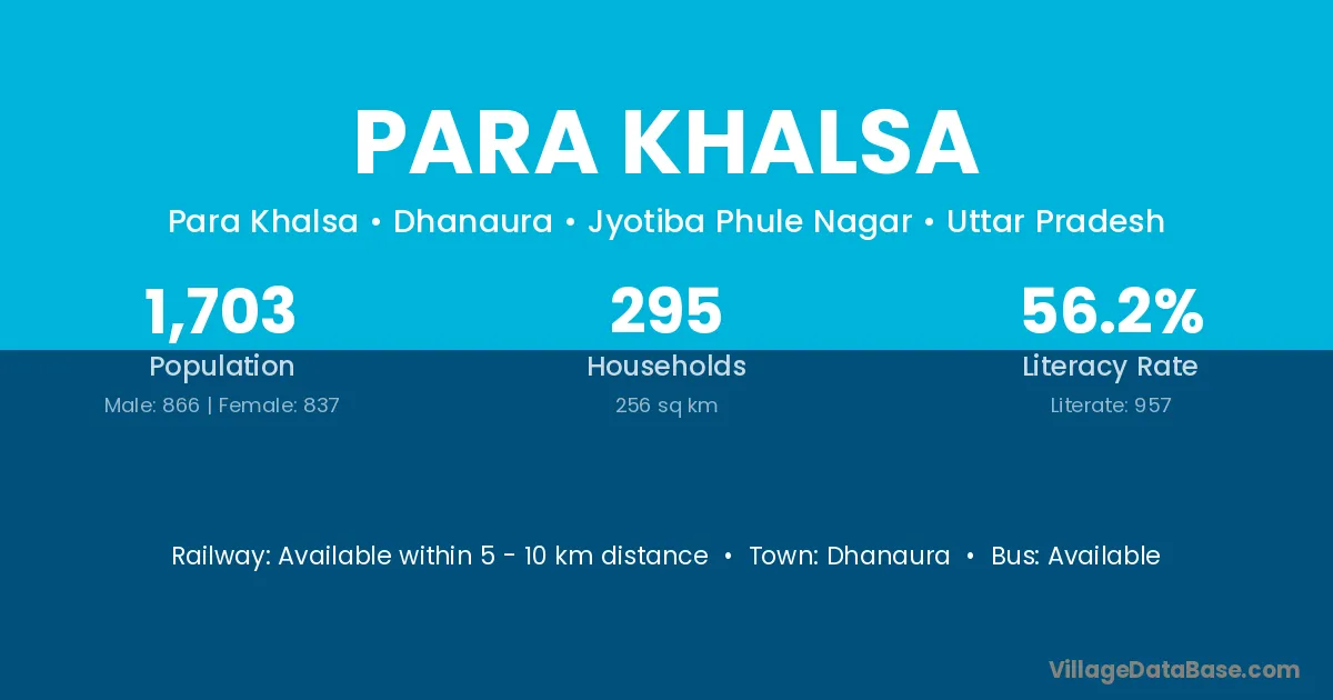 Para Khalsa village has a total population of 1,703 people, of which 866 are males and 837 are females.
