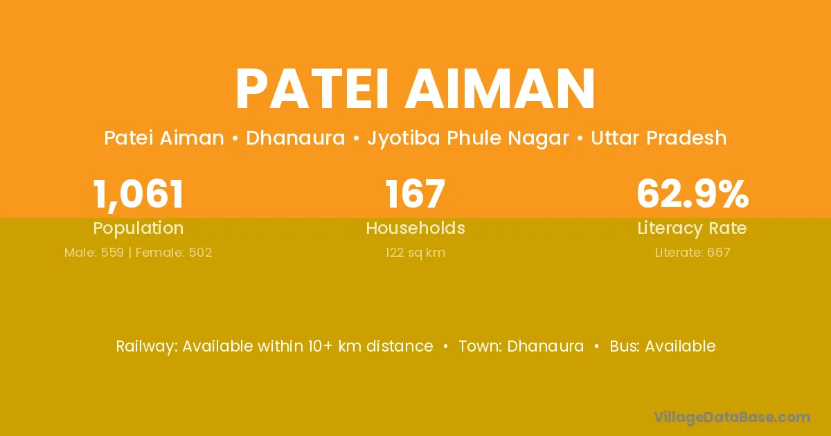 Dhanaura is the nearest town to Patei Aiman village for major economic activities