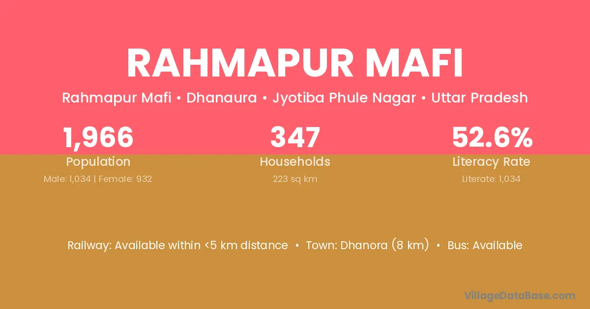 Rahmapur Mafi village has a total population of 1,966 people, of which 1,034 are males and 932 are females.