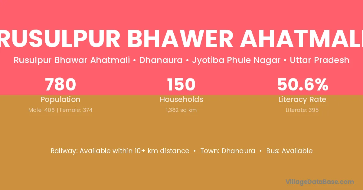 Rusulpur Bhawer Ahatmali village has a total population of 780 people, of which 406 are males and 374 are females.