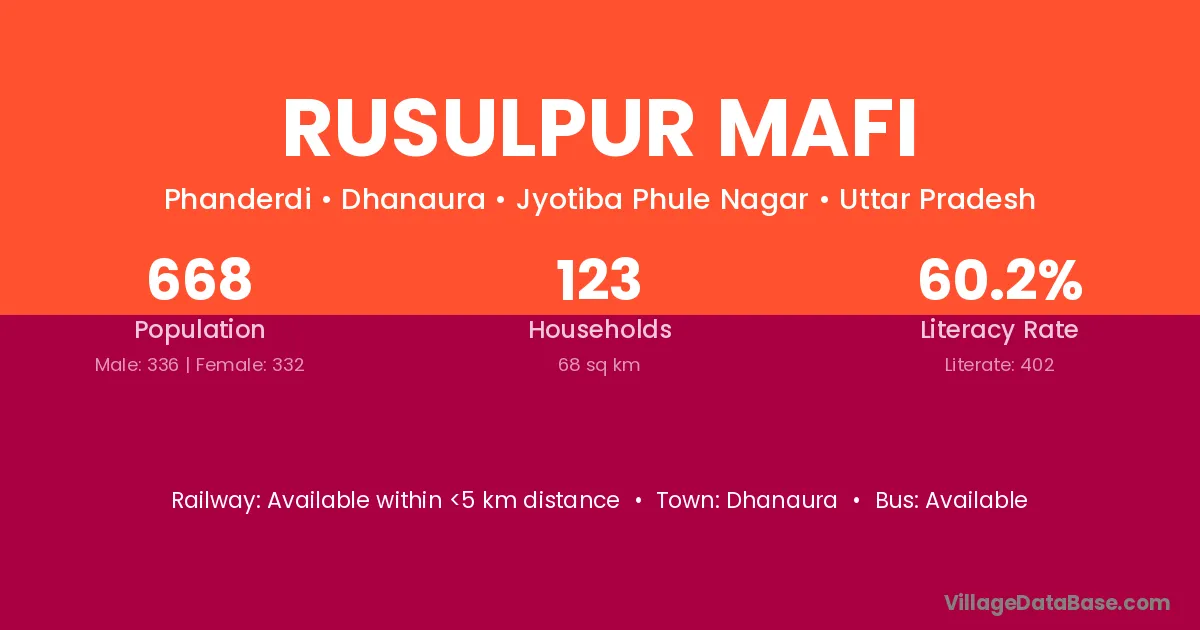 Rusulpur Mafi village has a total population of 668 people, of which 336 are males and 332 are females.