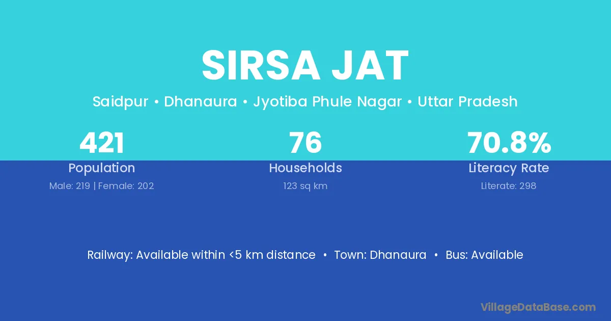 Sirsa Jat village has a total population of 421 people, of which 219 are males and 202 are females.