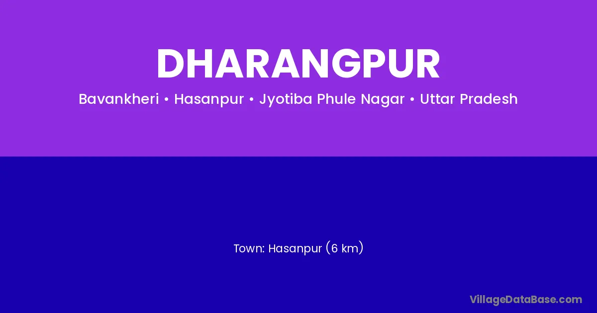 Hasanpur (6 km) is the nearest town to Dharangpur village for major economic activities and is located approximately 6 km away.
