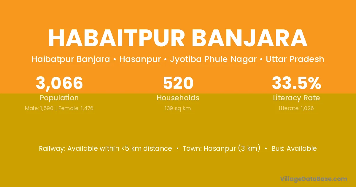 Hasanpur (3 km) is the nearest town to Habaitpur Banjara village for major economic activities and is located approximately 3 km away.