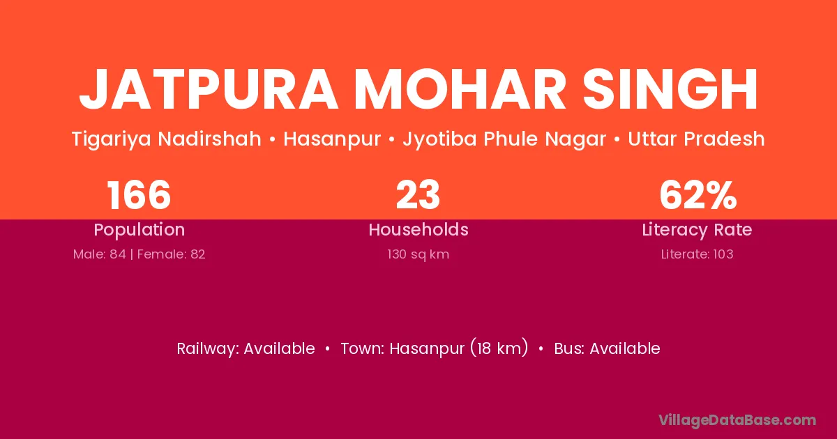 Hasanpur (18 km) is the nearest town to Jatpura Mohar Singh village for major economic activities and is located approximately 18 km away.