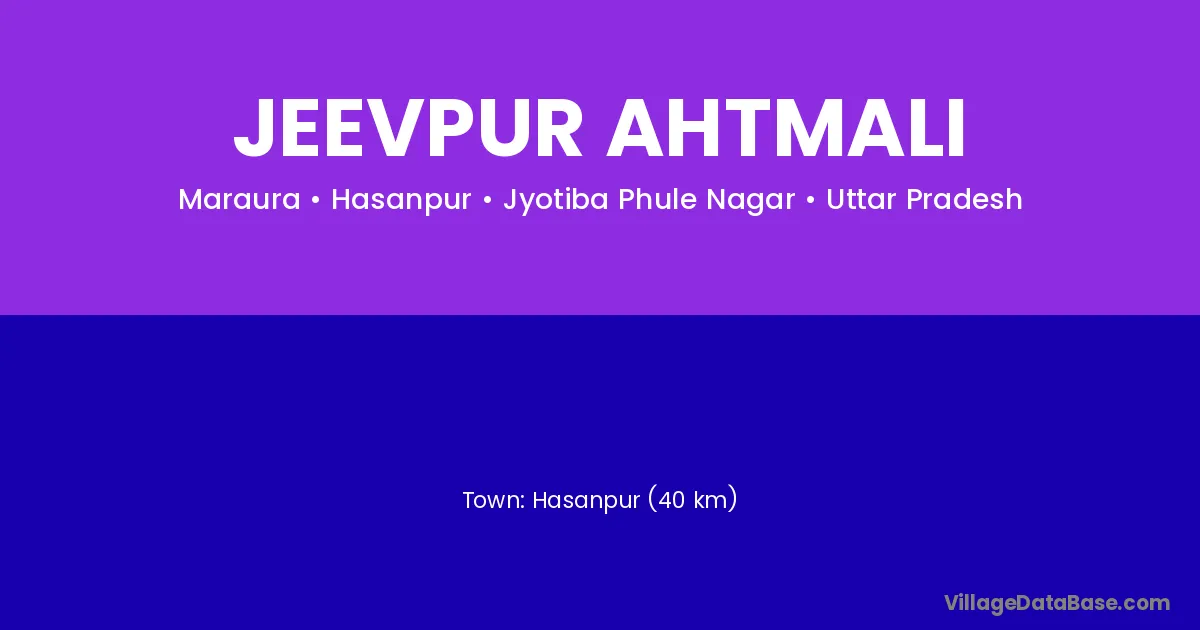 Hasanpur (40 km) is the nearest town to Jeevpur Ahtmali village for major economic activities and is located approximately 40 km away.