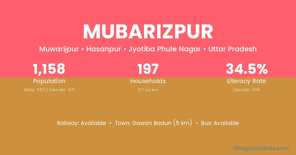 Gawan Badun (5 km) is the nearest town to Mubarizpur village for major economic activities and is located approximately 5 km away.