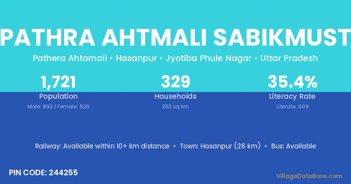 Hasanpur (26 km) is the nearest town to Pathra Ahtmali Sabikmust village for major economic activities and is located approximately 26 km away.