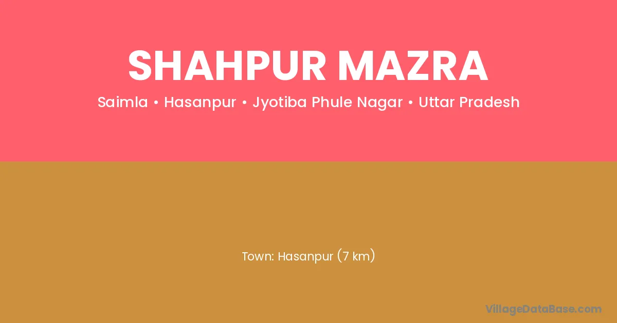 Hasanpur (7 km) is the nearest town to Shahpur Mazra village for major economic activities and is located approximately 7 km away.