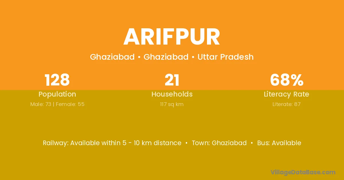 Arifpur village has a total population of 1,381 people, of which 736 are males and 645 are females.