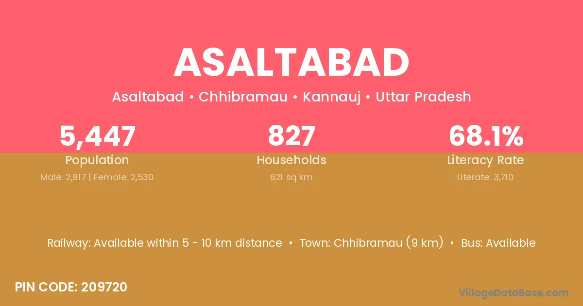 Chhibramau (9 km) is the nearest town to Asaltabad village for major economic activities and is located approximately 9 km away.