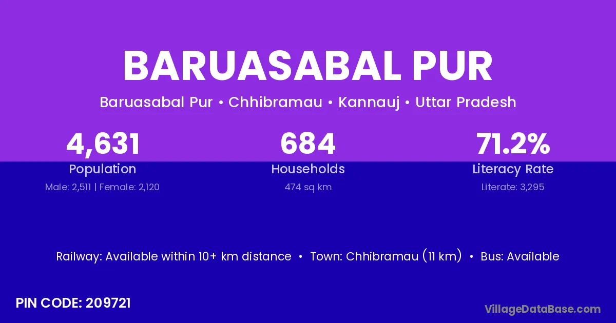 Chhibramau (11 km) is the nearest town to Baruasabal Pur village for major economic activities and is located approximately 11 km away.