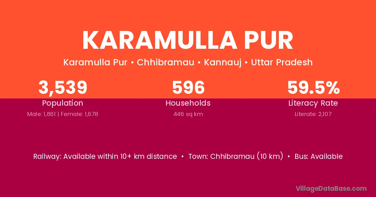 Chhibramau (10 km) is the nearest town to Karamulla Pur village for major economic activities and is located approximately 10 km away.