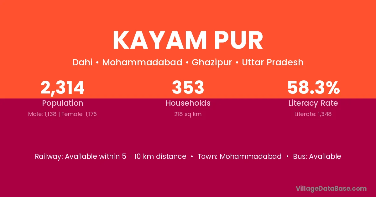 Saurikh (1 km) is the nearest town to Kayam Pur village for major economic activities and is located approximately 1 km away.