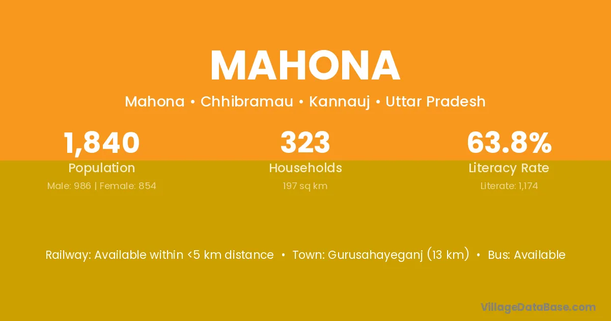 Gurusahayeganj (13 km) is the nearest town to Mahona village for major economic activities and is located approximately 13 km away.
