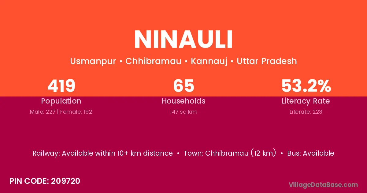 Chhibramau (12 km) is the nearest town to Ninauli village for major economic activities and is located approximately 12 km away.