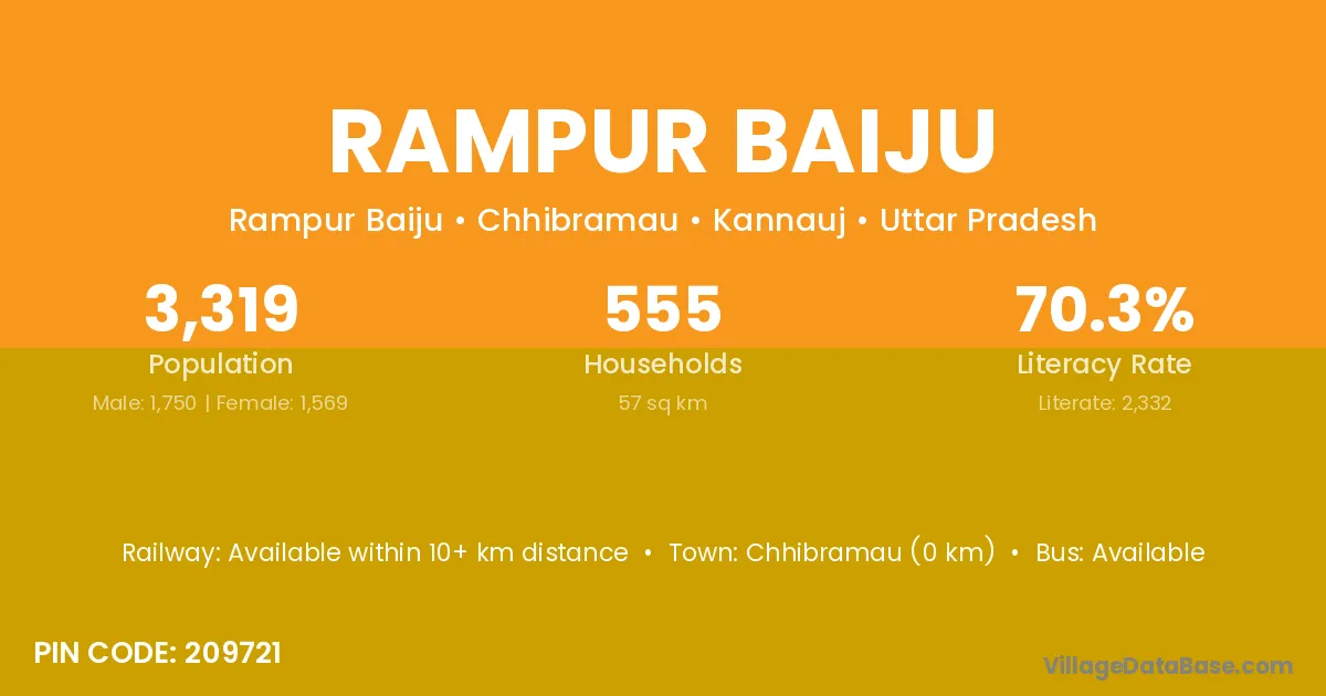Chhibramau (0 km) is the nearest town to Rampur Baiju village for major economic activities