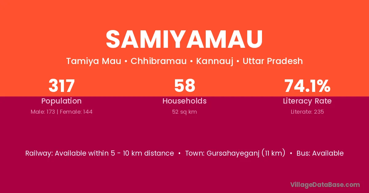 Gursahayeganj (11 km) is the nearest town to Samiyamau village for major economic activities and is located approximately 11 km away.
