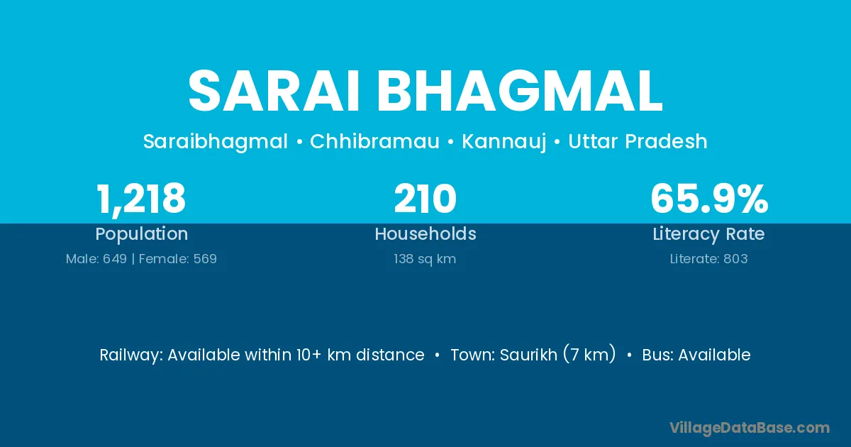 Saurikh (7 km) is the nearest town to Sarai Bhagmal village for major economic activities and is located approximately 7 km away.